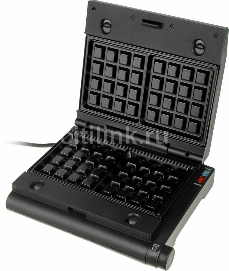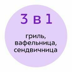 | Плюсы: | Три съёмные панели: для вафель, гриля и сендвичей, размер, регулировка температуры |