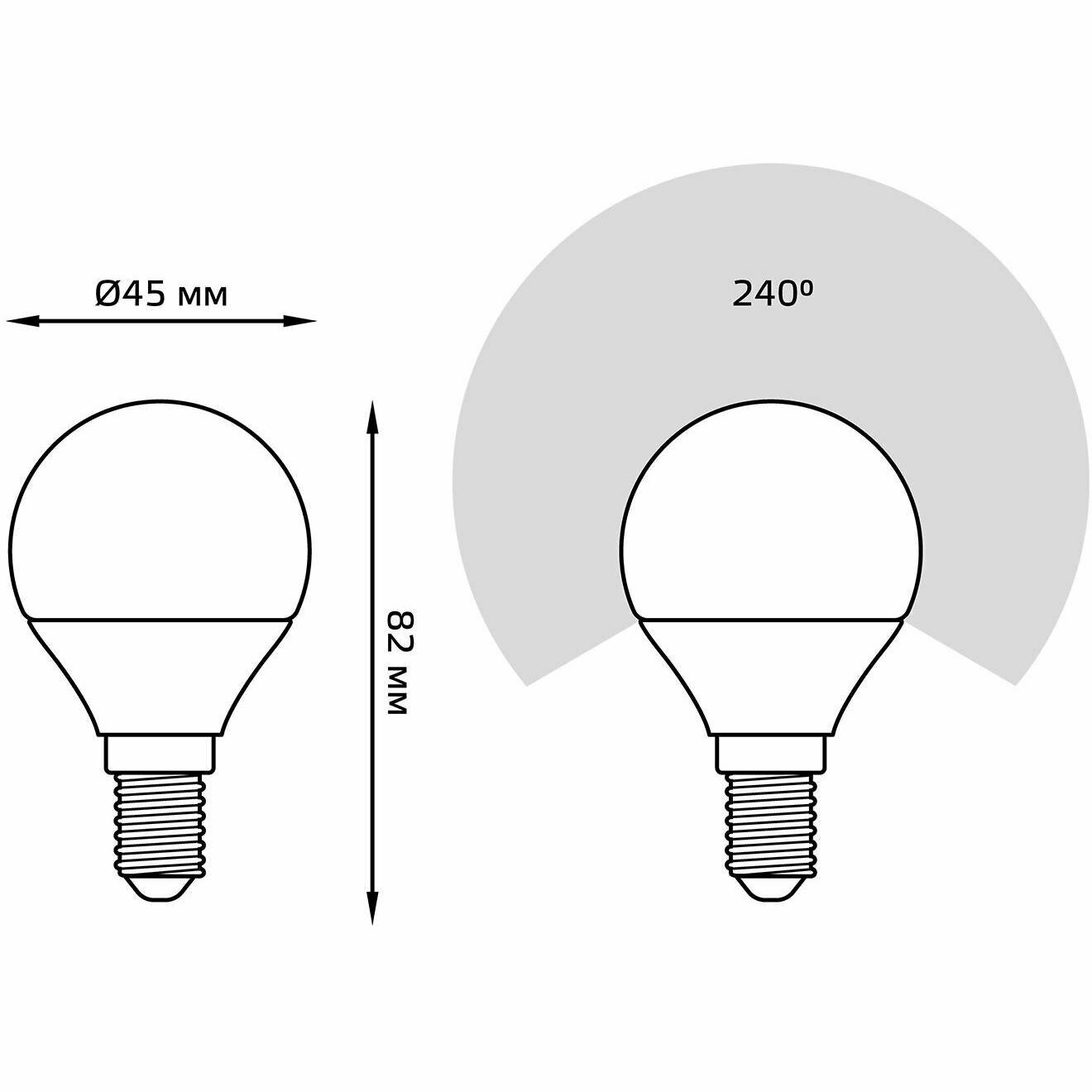 Упаковка светодиодных ламп 10 шт, gauss 105101207, E14, G45, 6,5Вт