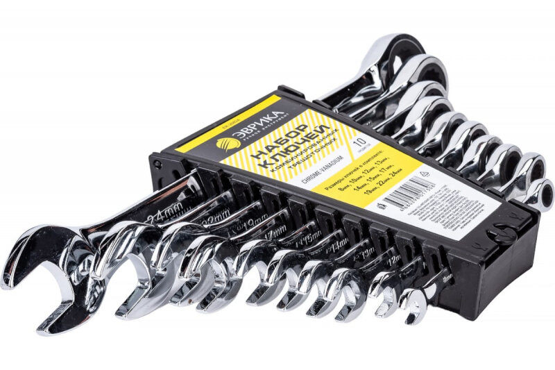 Купить Набор Ключей Комбинированных 8-24Мм Трещоточных 10 Предметов С Держателем Эврика эврика арт. ER-20824