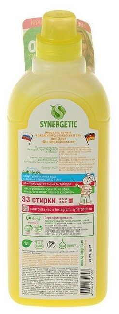 Кондиционер-ополаскиватель для белья SYNERGETIC "Цветочная фантазия", 1 л (33 стирки)