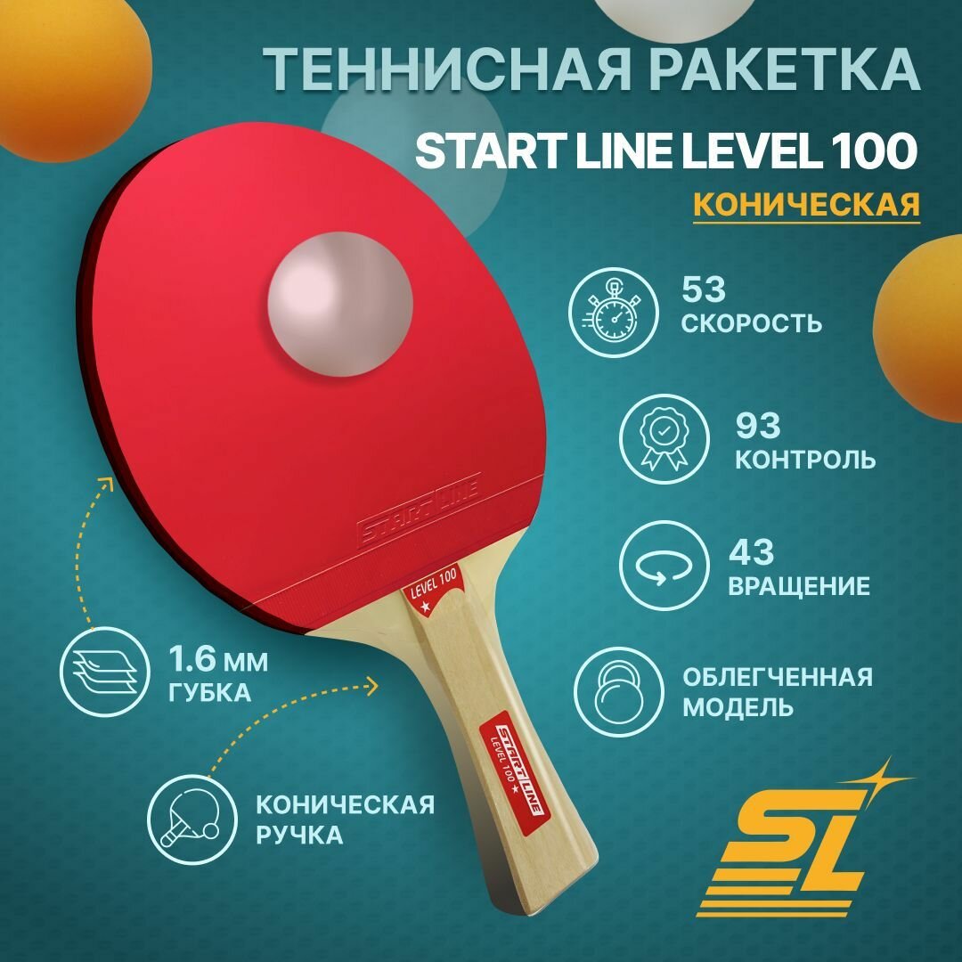 Ракетка для настольного тенниса Start Line Level 100 (коническая) интересное: