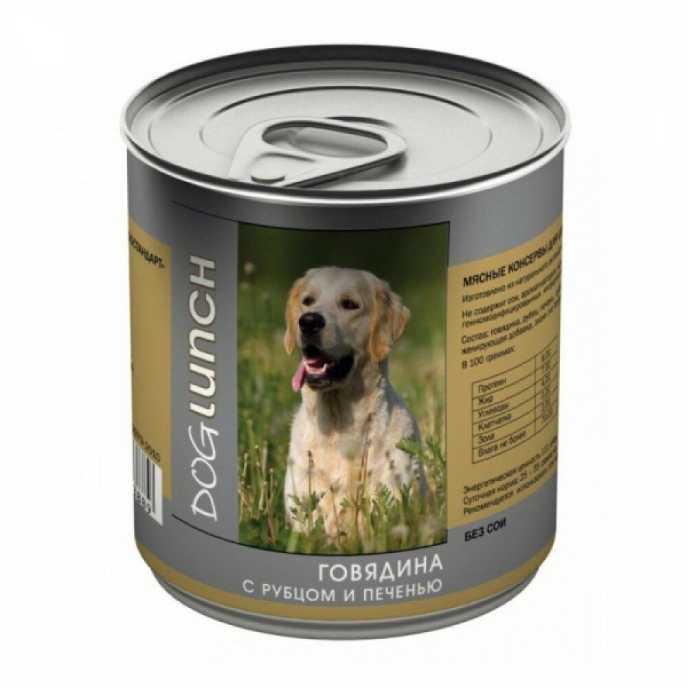 Консервы для собак Dog Lunch / Дог Ланч для взрослых животных из говядины, рубца и печени в желе 750гр / корм влажный