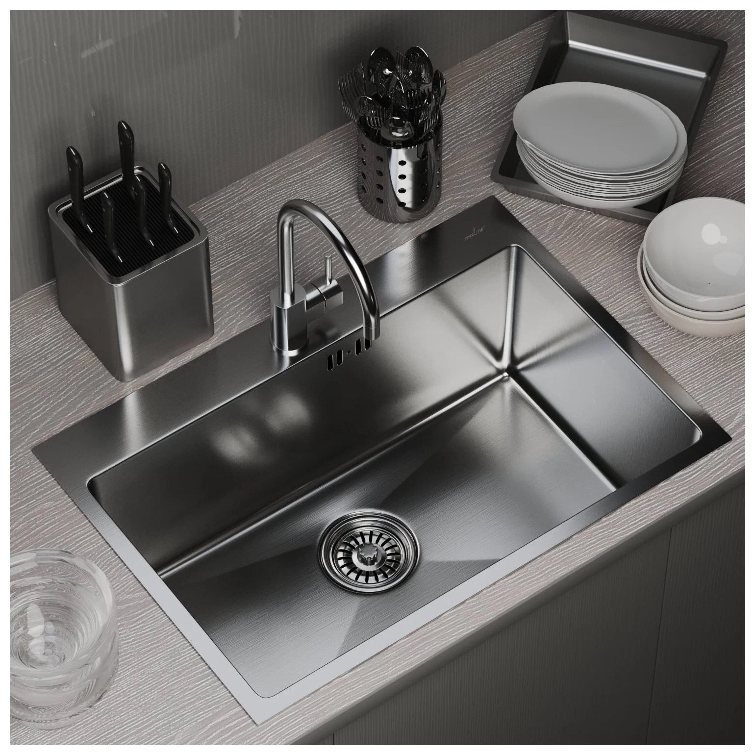 Мойка для кухни из нержавеющей стали Mixline Pro 65х45 с сифоном (сатин)