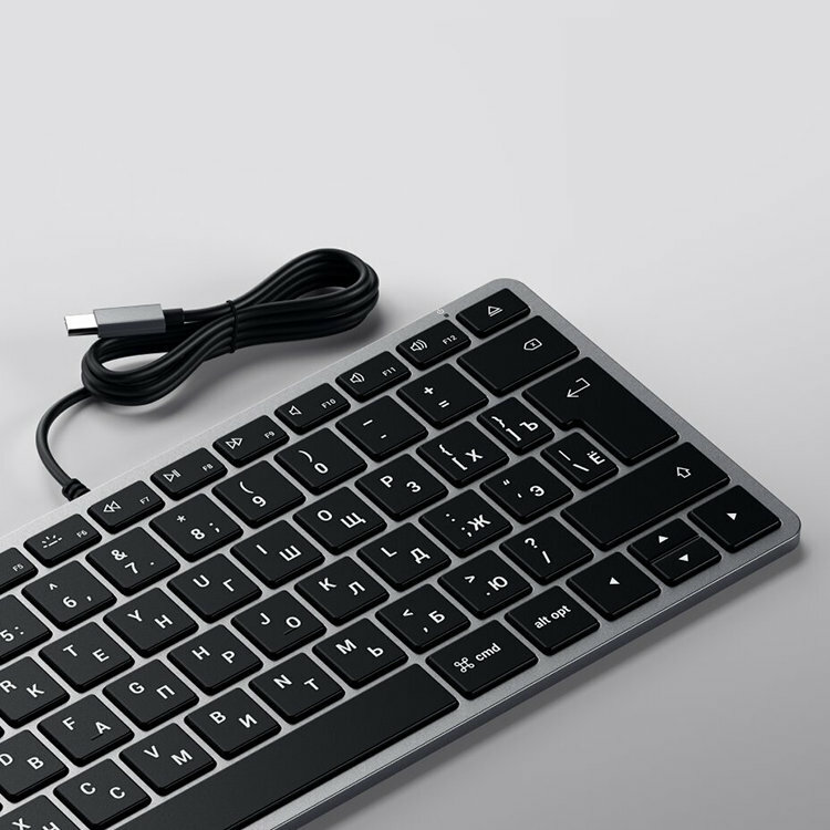 Клавиатура проводная Satechi Slim W1 USB-C Wired Keyboard-RU. Раскладка - Русская. Цвет- Серый космос.