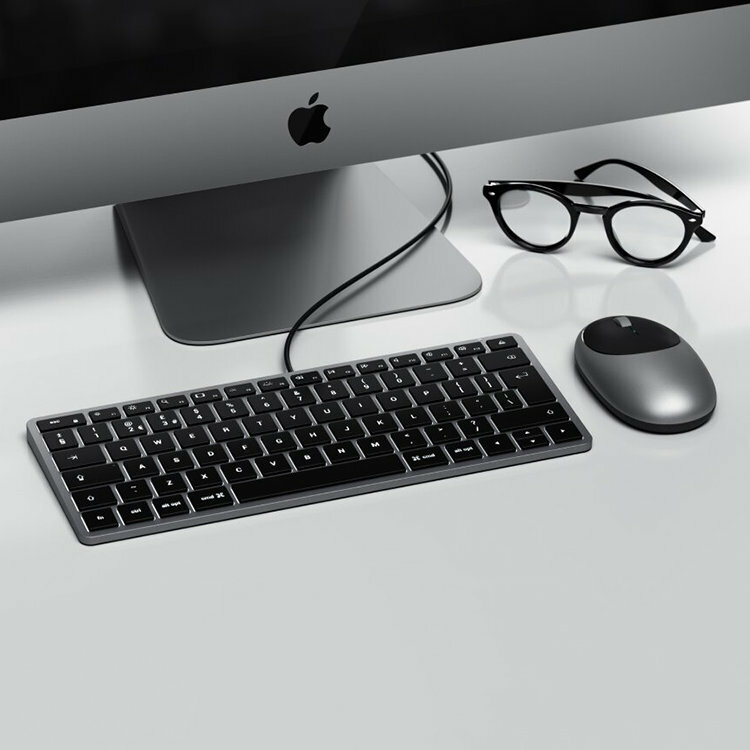 Клавиатура Satechi Slim W1 проводная Space Grey, USB-C, подсветка, серебристая, для Mac, iOS
