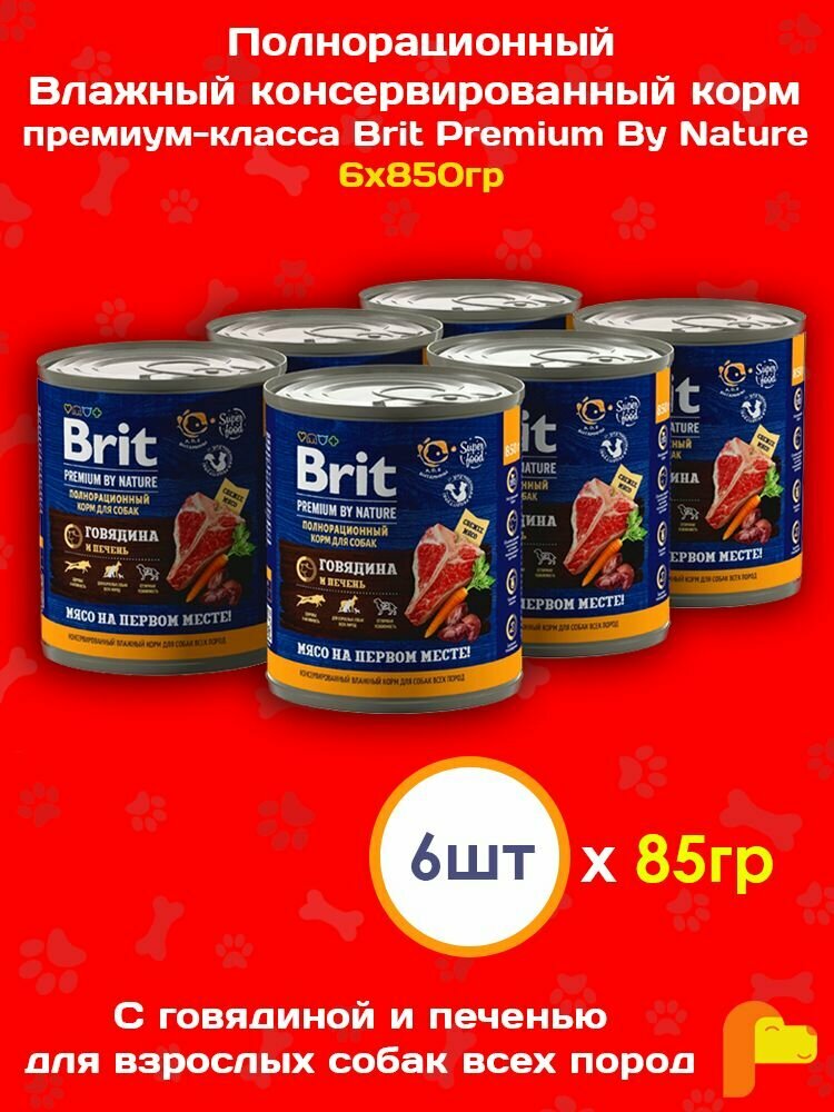 Консервированный корм BRIT PREMIUM BY NATURE DOG для взрослых собак с говядиной и печенью (850 гр х 6 шт)