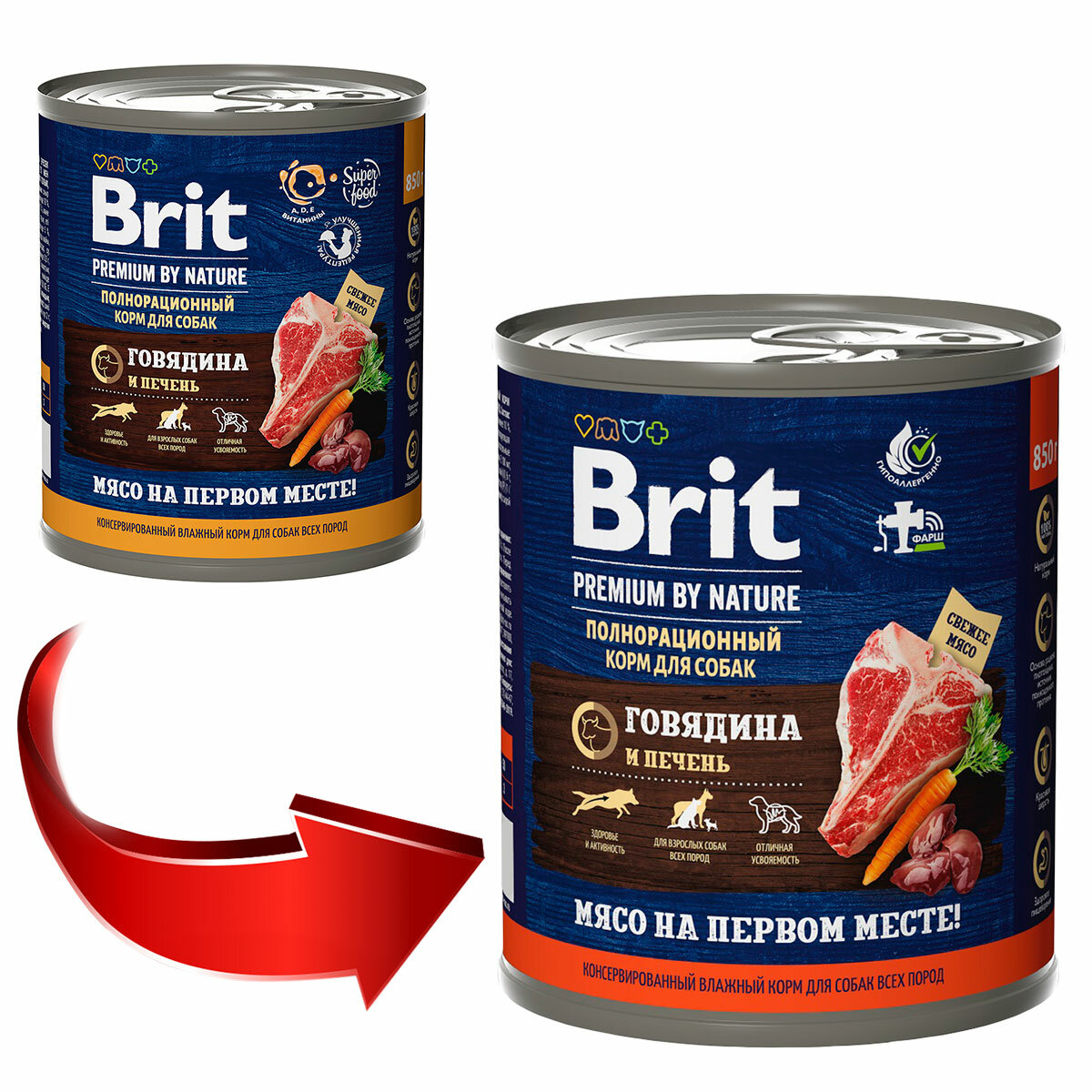 Консервы для собак Brit / Брит Premium by Nature для взрослых животных фарш из говядины и печени 850г / корм влажный