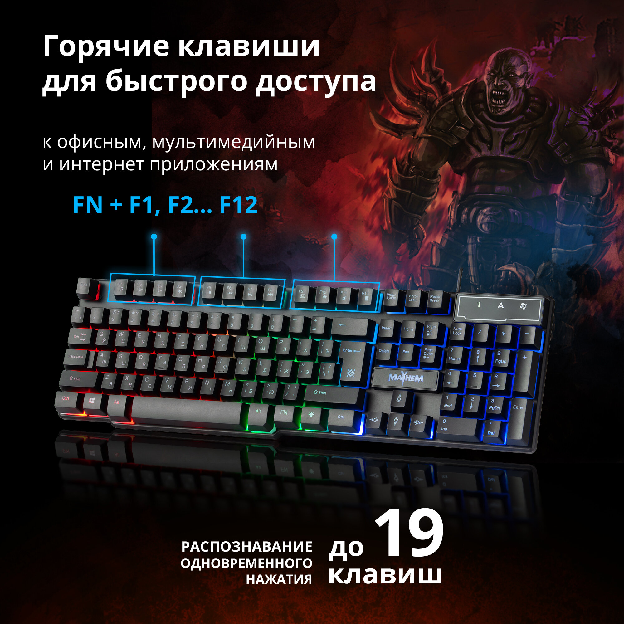Игровая клавиатура Defender Mayhem Gk-360dl RU, RGB подсветка,19 Anti-Ghost .