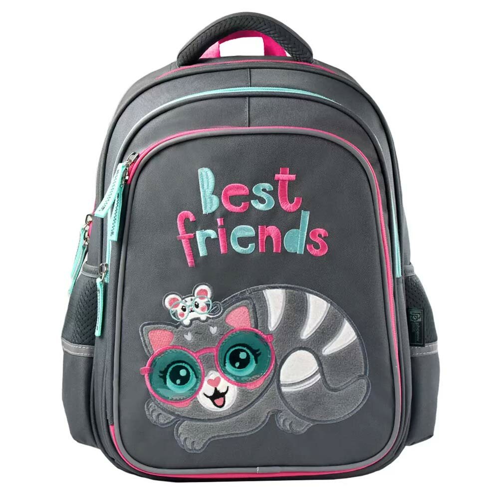 Рюкзак школьный котик С мышкой 29х38.5х13.5см,полиэстер,2отд/54120