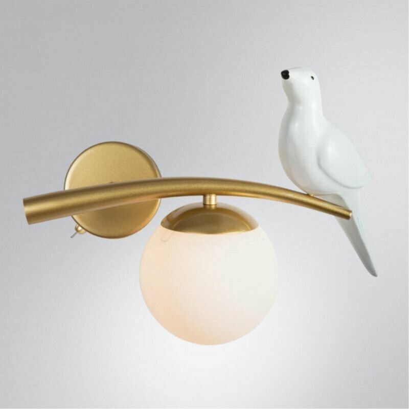 Бра ArteLamp с декоративной птицей ELTANIN A3422AP-1GO, E14, 60 Вт, металл, стекло, золотой