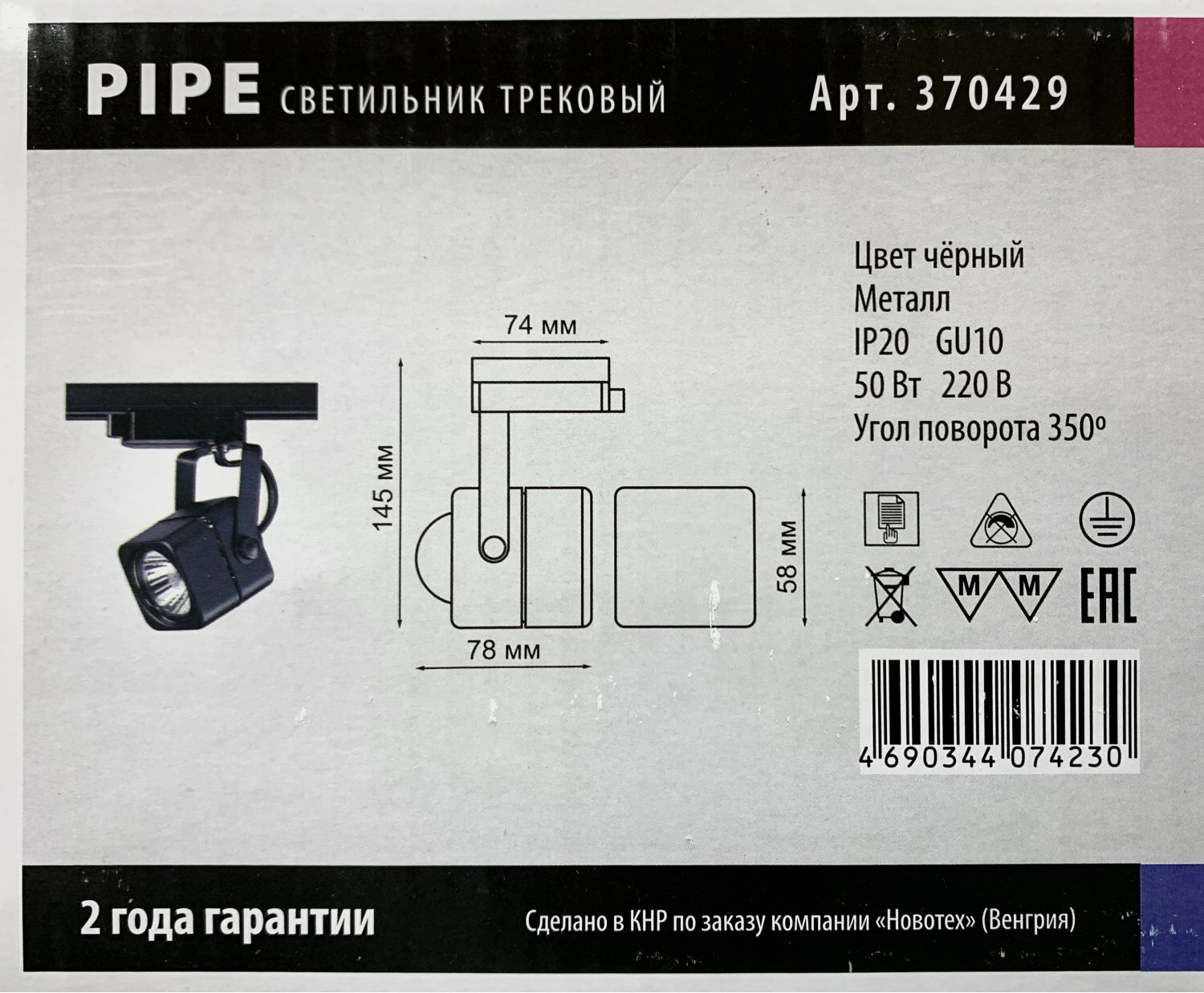 Трековый светильник NOVOTECH PIPE 370429 1Х50ВтХGU10; металл; черный