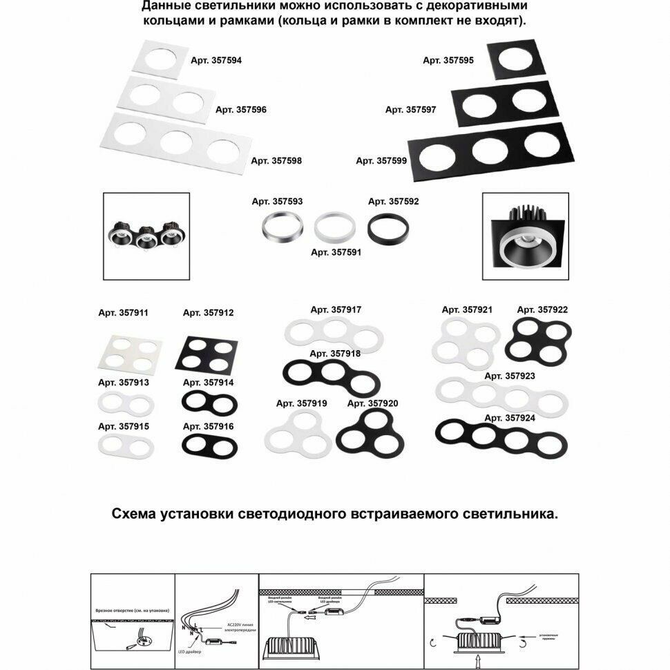 Встраиваемый светильник Novotech Metis 357586, LED, кол-во ламп:1шт., Черный