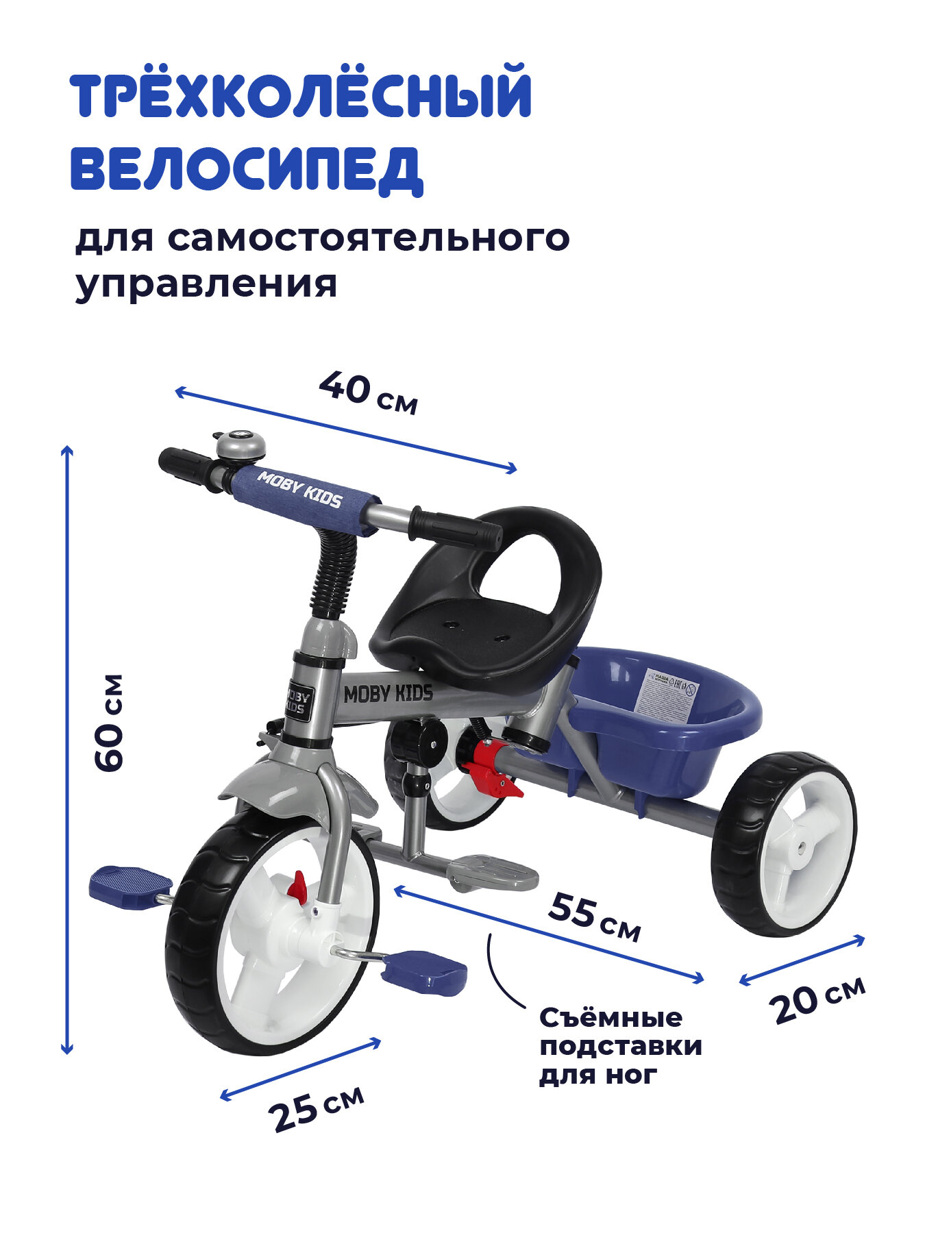 Купить Велосипед 3-х колесный Moby Kids 3в1 Blitz 10x8 EVA, синий 646230