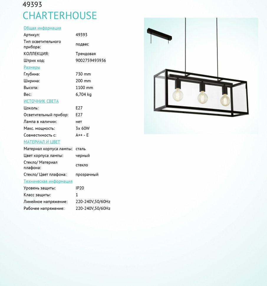 Ниже Вы можете прочитать отзывы на Светильник подвесной Eglo CHARTERHOUSE, 49393, 180W, E27, ознакомится с подробными характеристиками, посмотреть интересные обзоры и фотографии на Светильник подвесной Eglo CHARTERHOUSE, 49393, 180W, E27.