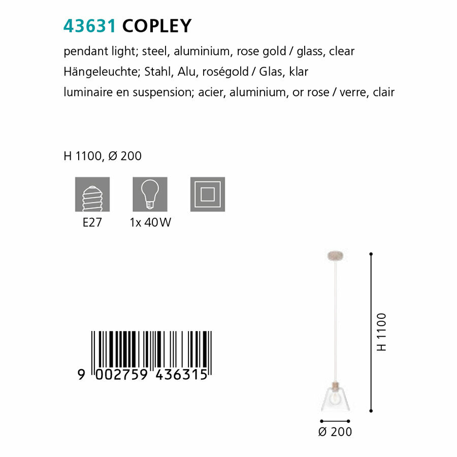 43631 Подвесной потолочный светильник (люстра) COPLEY, 1Х40W, E27, H1100, Ø200, сталь/алюминий/стекл