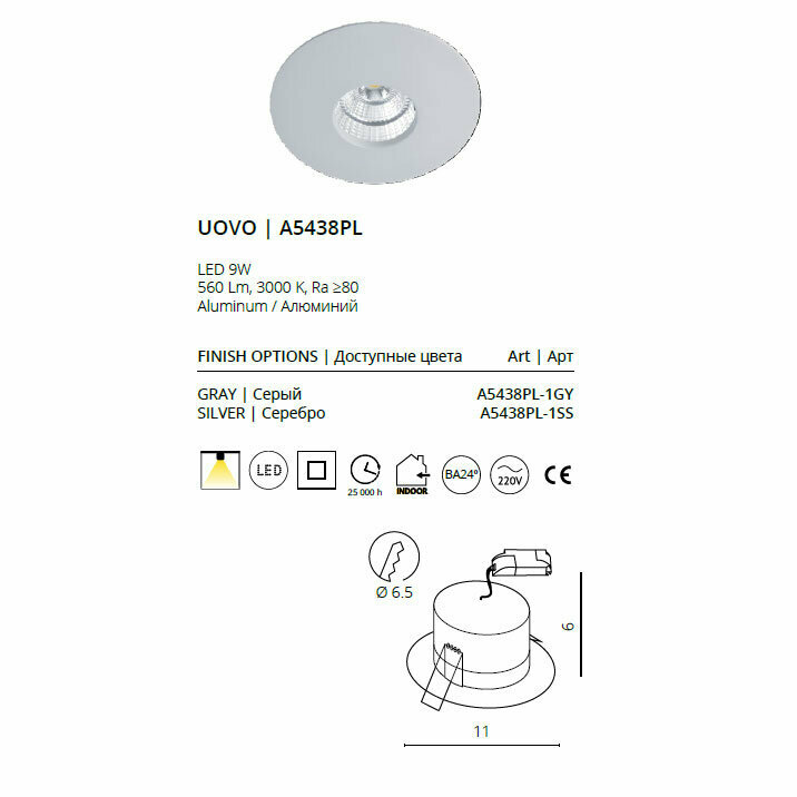 Светильник встраиваемый Arte Lamp UOVO A5438PL-1SS