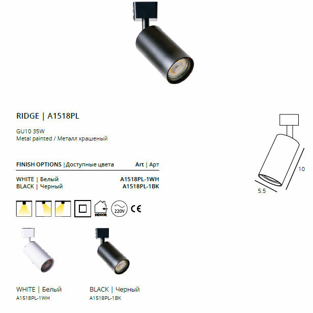 Трековый светильник Arte Lamp Ridge A1518PL-1WH, GU10, кол-во ламп:1шт., Белый