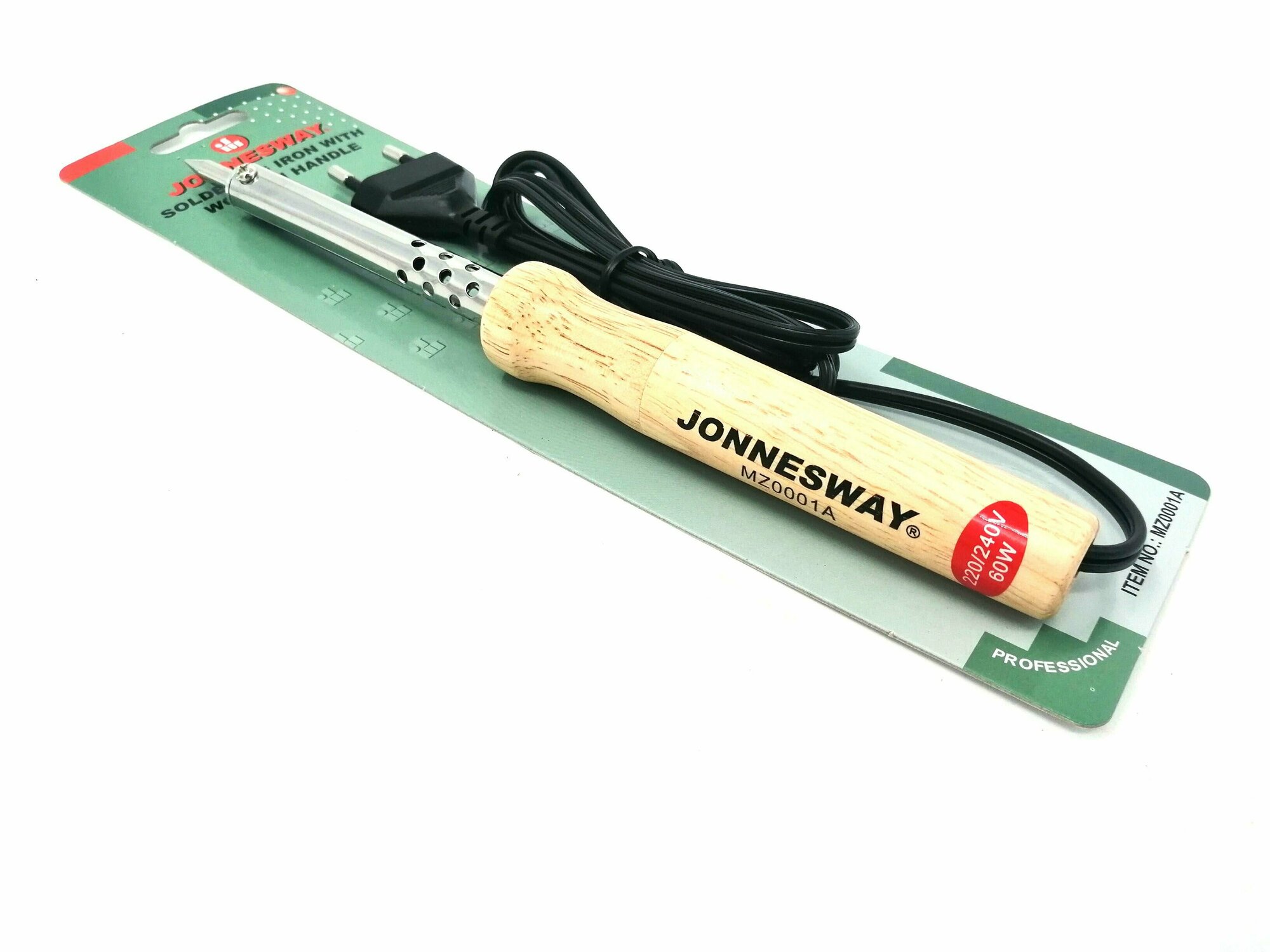 JONNESWAY MZ0001A MZ0001A Паяльник электрический с деревянной рукояткой, паяльный стержень 6 мм, 60W, 220V-240V, T=400 C