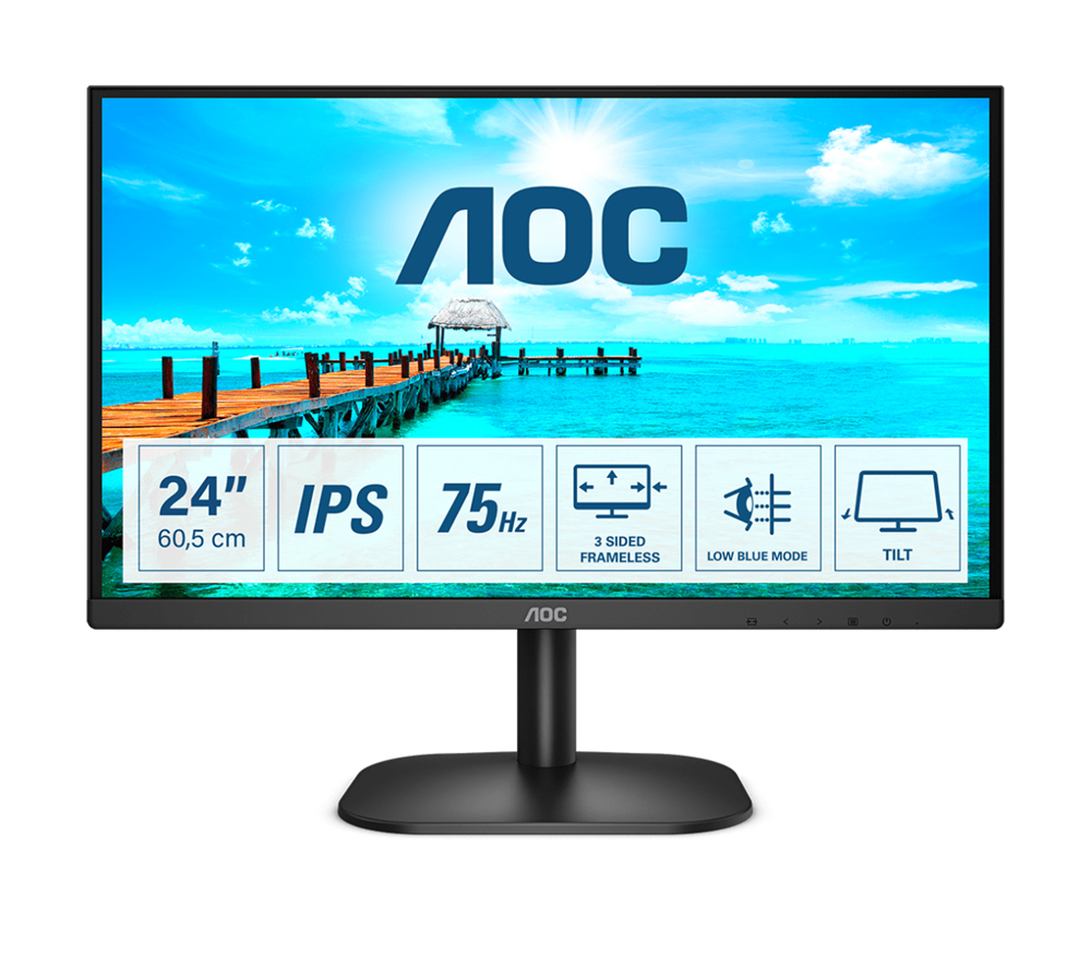 AOC Монитор LCD 23.8'' [16:9] 1920х1080(FHD) IPS, nonGLARE, 75 Hz, 250 cd/m2, H178°/V178°, 1000:1, 20М:1, 16.7M, 4ms, VGA, DVI, Tilt, 3Y, Black