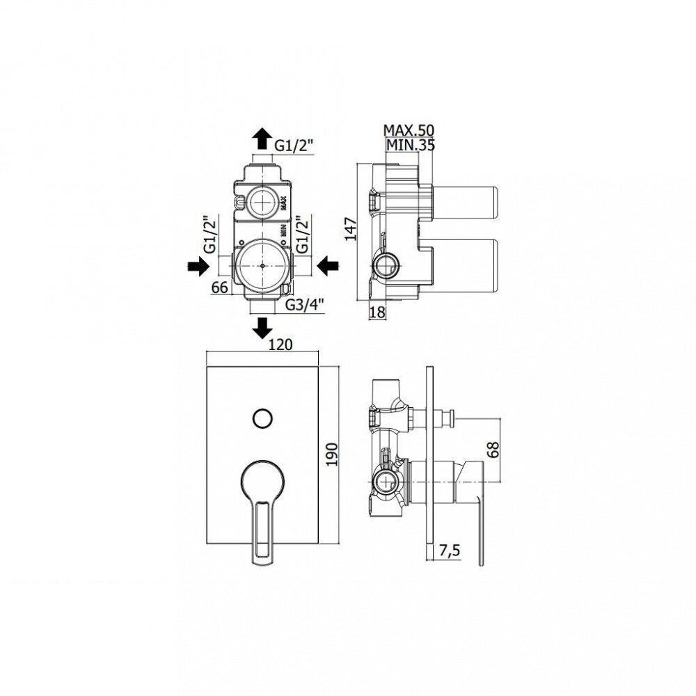 СохранитьСмеситель Paffoni, серии RINGO, встраиваемый для душа на 2 выхоода, хром RIN015CR/M интересное: