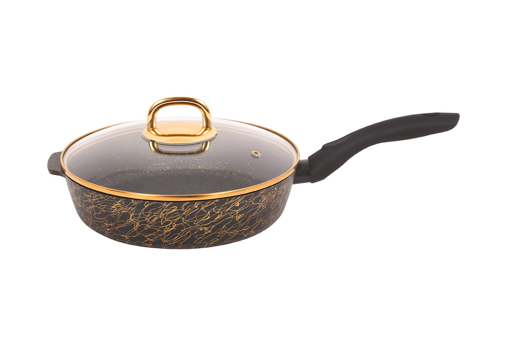 Сковорода глубокая 280мм с ручкой,со стеклянной крышкой,АП линия "Грация" (черный/золото) сгчз281а
