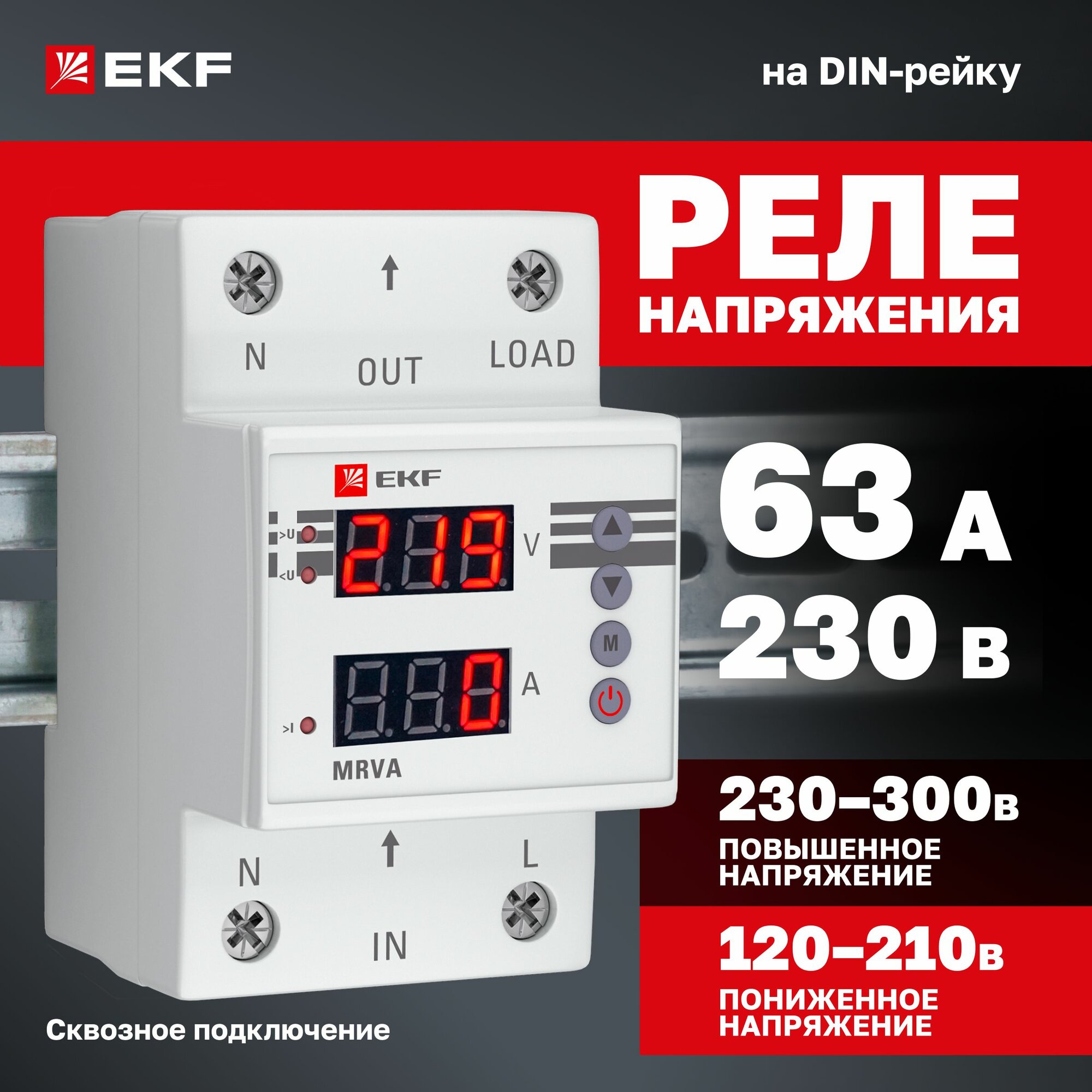 Реле напряжения и тока с дисплеем MRVA 32A MRVA-63A EKF
