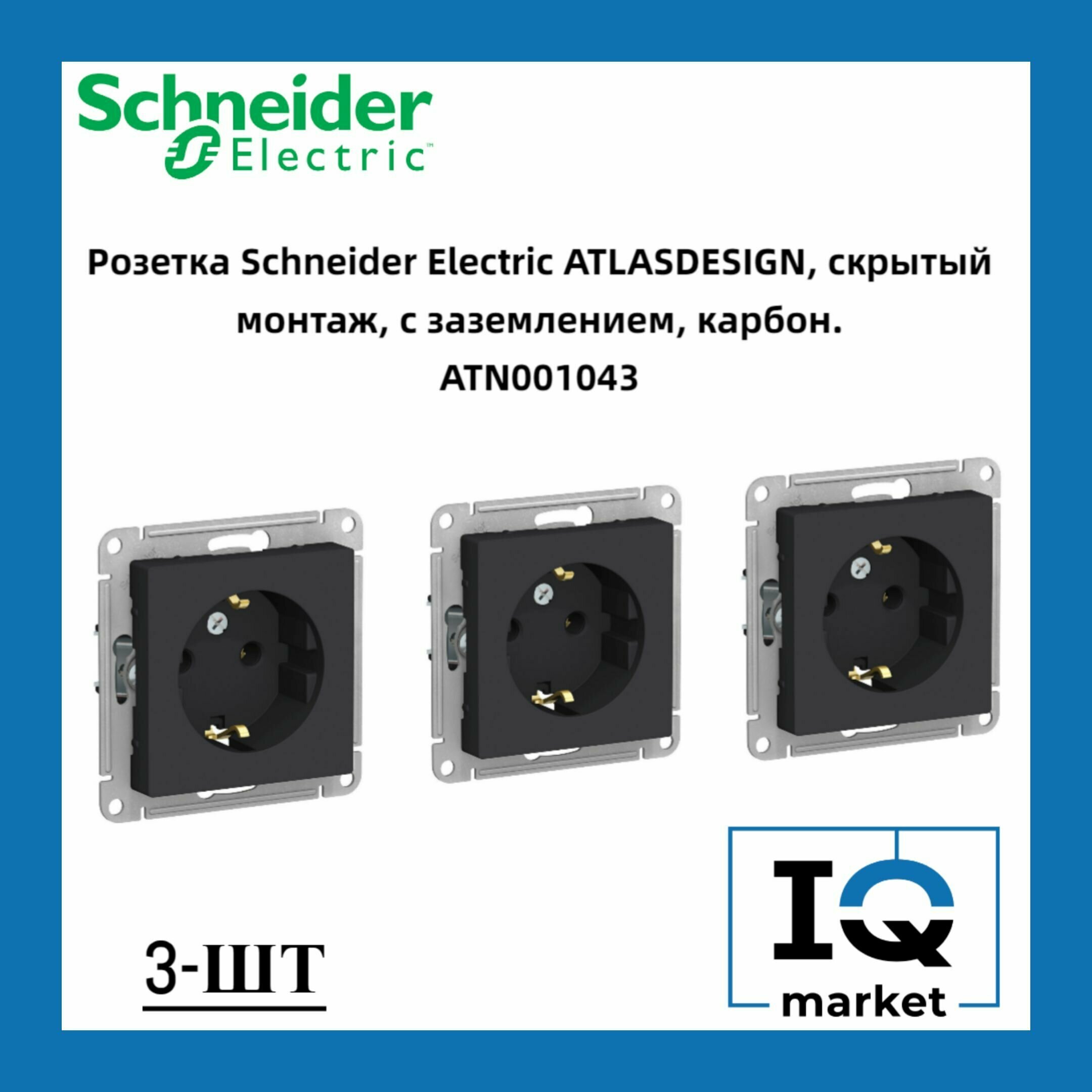 Купить Розетка силовая Schneider Electric Atlas Design карбон 3 шт ATN001043