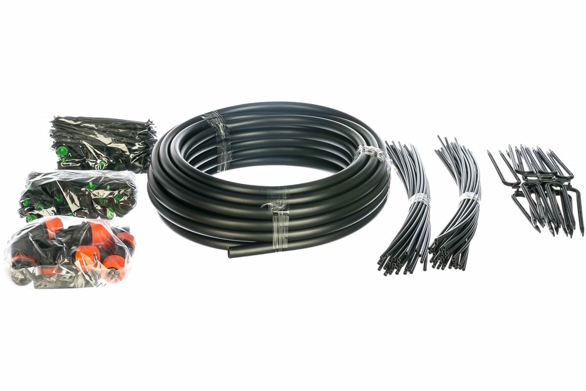 | Комплектация | шланг магистральный 1/2" 18 м - 1 шт, микротрубка - 60 шт, цанговый тройник 1/2" - 1 шт, цанговый зажим 1/2" - 3 шт, цанговый уголок 1/2" - 2 шт, компенсированная капельница - 61 шт, стрелка с зажимом - 60 шт, фильтр тонкой очистки - 1 шт, зажим для магистрального шланга - 2 шт, прижим для магистрального шланга - 16 шт, шило для магистрального шланга - 1 шт |