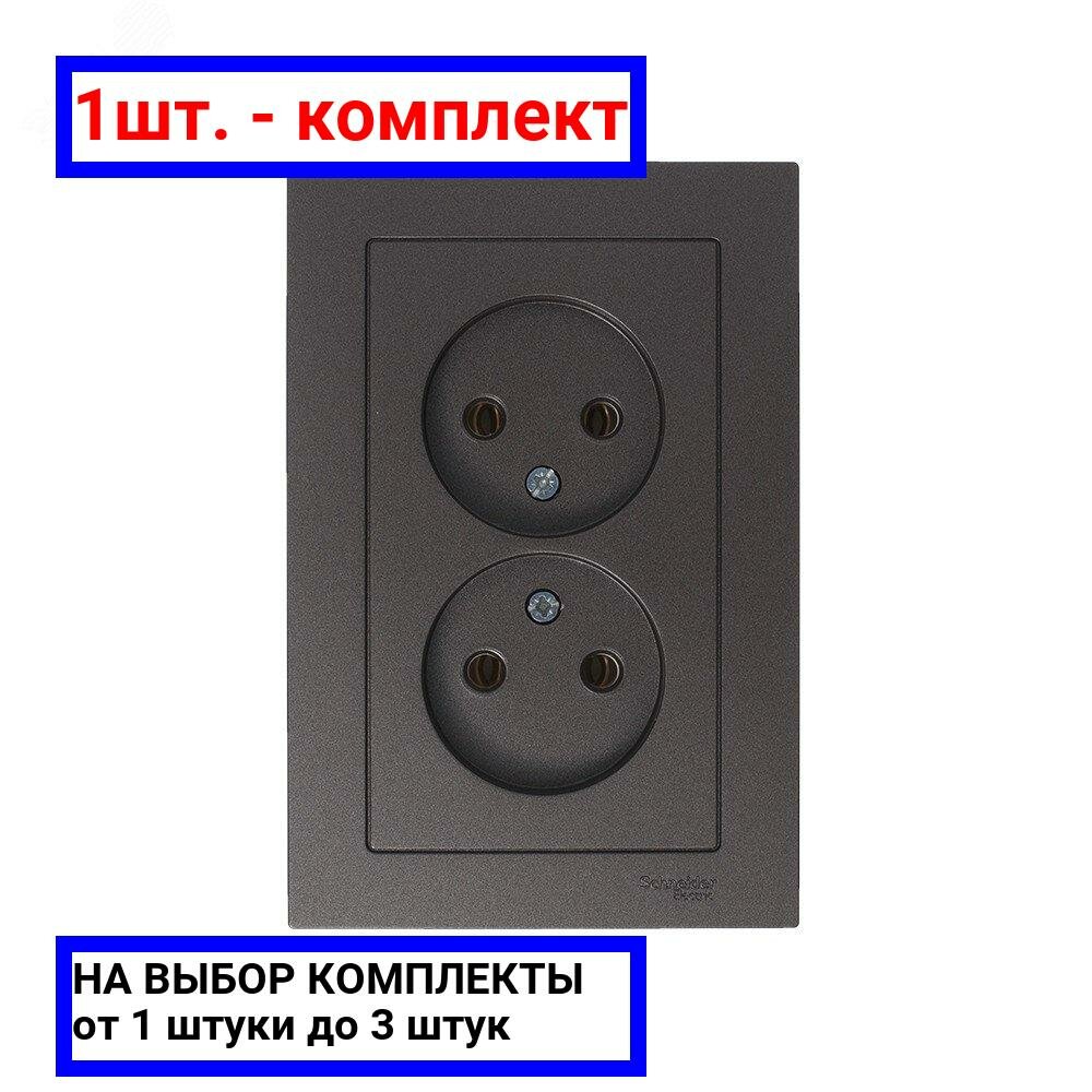 Розетка двухместная ATLASDESIGN, скрытый монтаж, карбон | код. ATN001020 | Schneider Electric (5шт. в упак.)