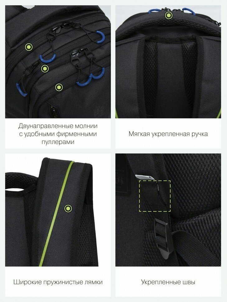 СохранитьШкольный рюкзак GRIZZLY RU-338-1 черный-салатовый, 31х42х22 интересное: