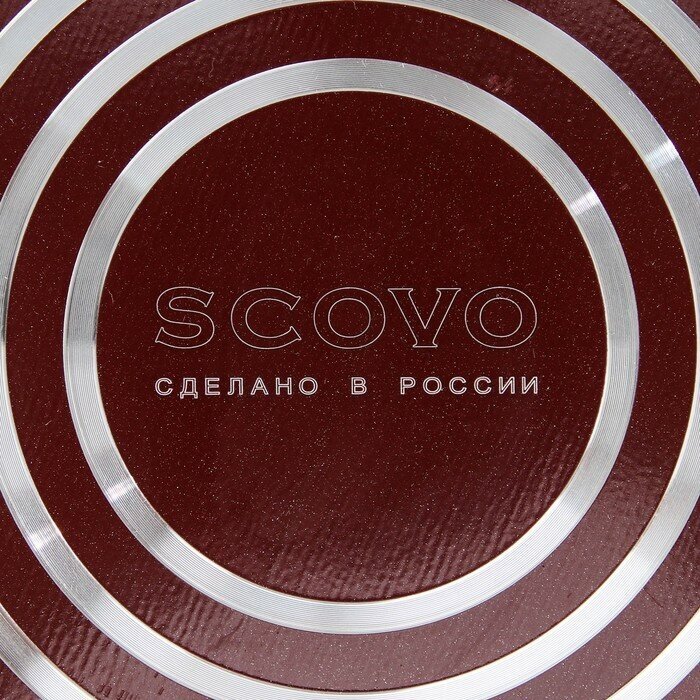 SCOVO Сковорода «Эксперт», d=20 см, пластиковая ручка, стеклянная крышка, антипригарное покрытие, цвет бордовый
