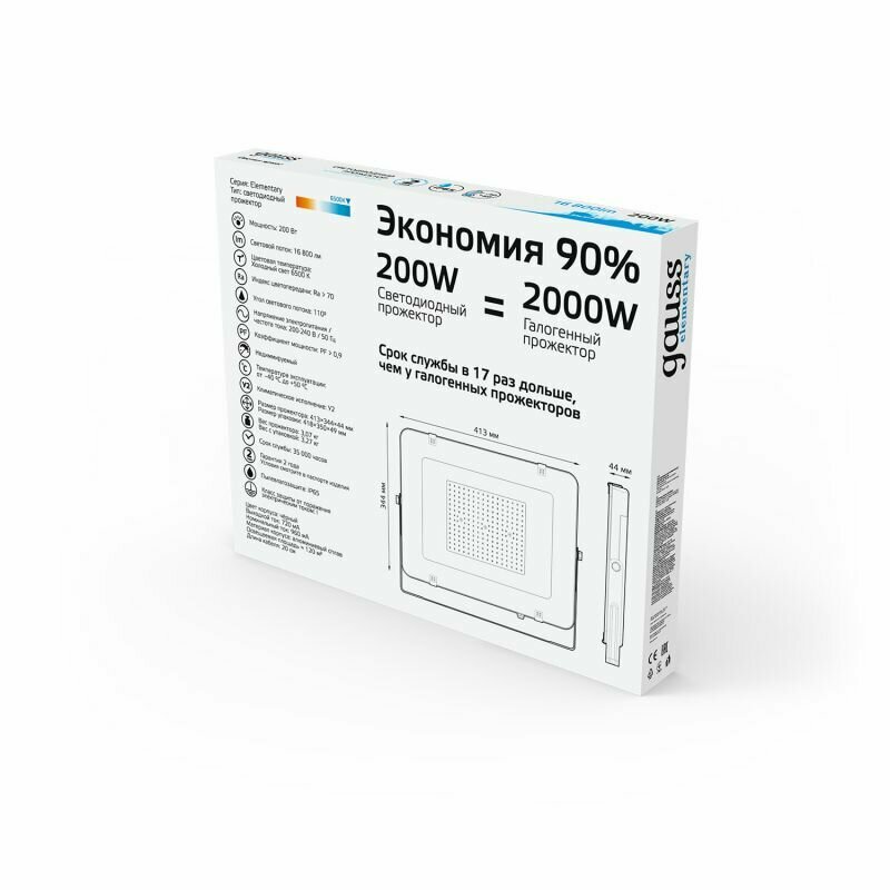 Прожектор Gauss Elementary 200W 16800lm IP65 6500K, черный