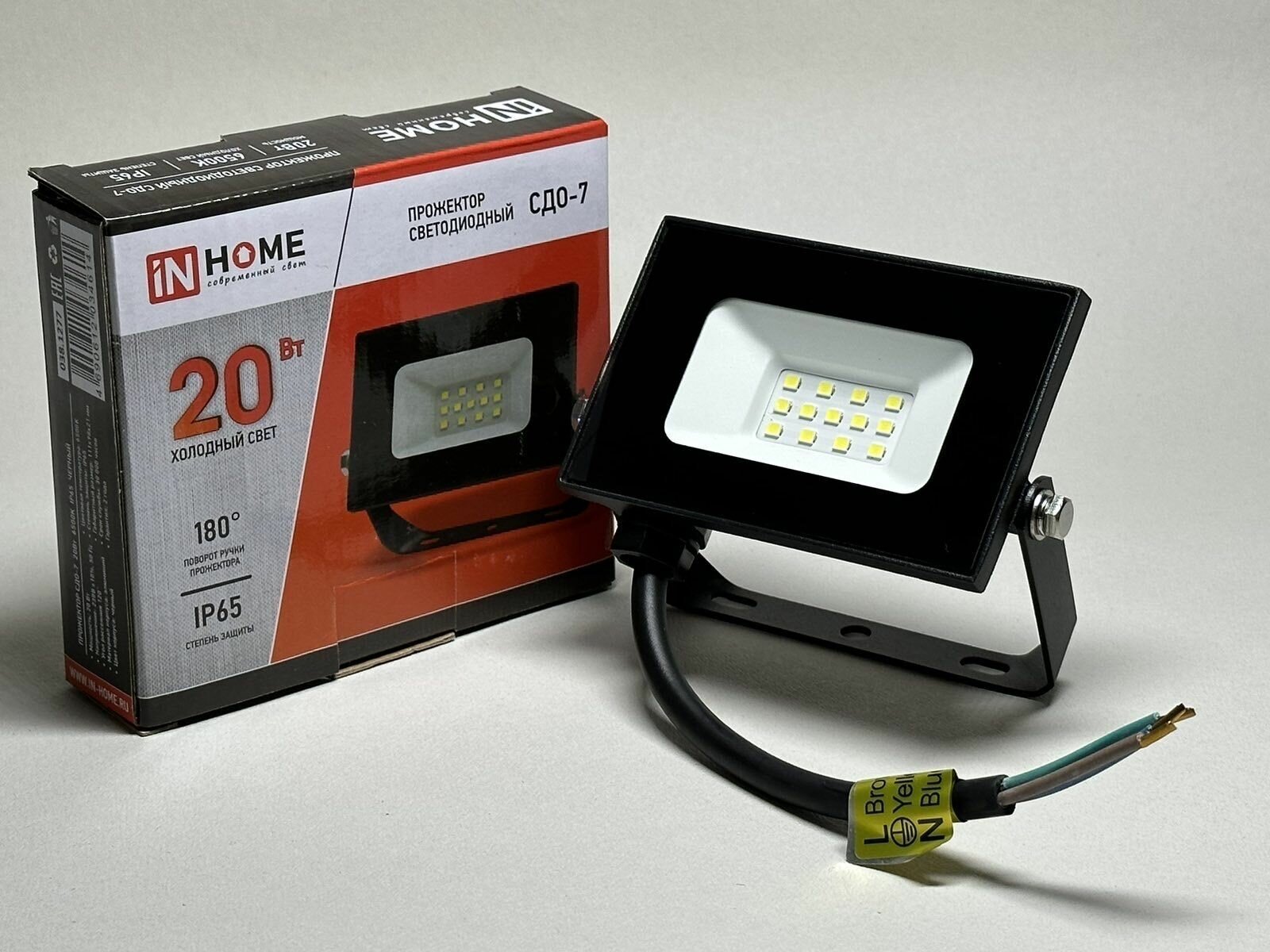 Прожектор светодиодный IN HOME СДО-7 20Вт 230В 6500К IP65 черный