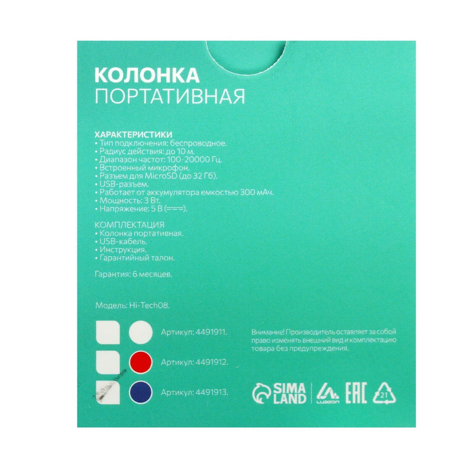 Купить Luazon Home Портативная колонка LuazON Hi-Tech08, 3 Вт, 300 мАч, microSD, USB, синяя