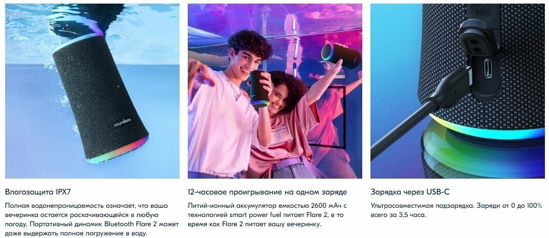 СохранитьПортативная колонка ANKER SoundСore Flare II, 20 Вт, синий интересное: