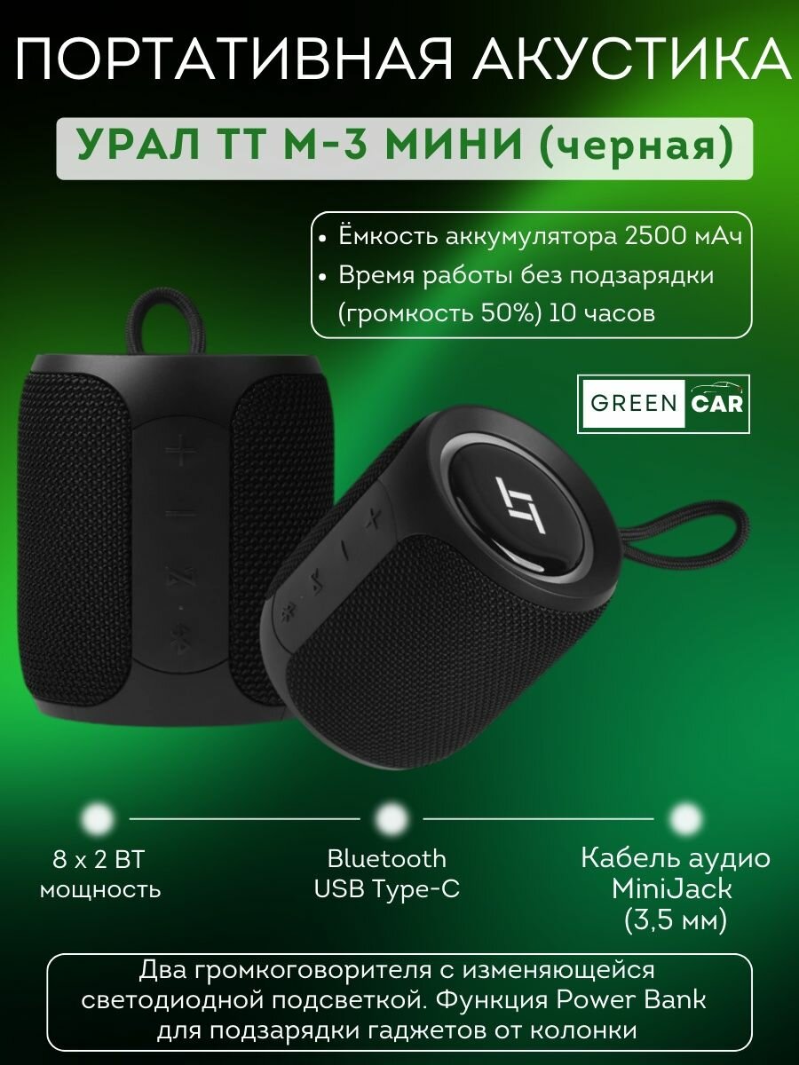 Портативная акустика Ural ТТ М3+ мини черный