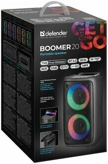 Колонка портативная музыкальная bluetooth, беспроводная с блютуз Defender Boomer 20, 20Вт, с подсветкой, bluetooth, FM, USB, MicroSD, с разъемом для микрофона