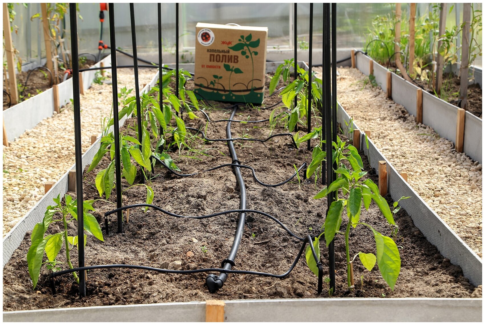 Брал для теплицы 3х6 метров для полива томатов, оугрцов, синеньких и перцев, У меня даже по количеству корней сошлось.