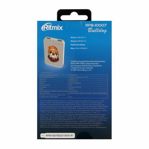 Внешний аккумулятор Ritmix RPB-10007 (бульдог)