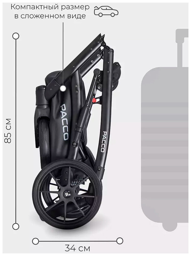 Коляска детская универсальная Riko Basic Pacco Classic 2 в 1, 04 Carbon темно-серый-черный