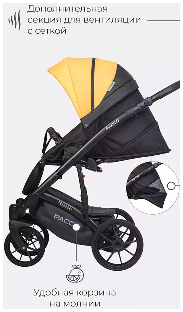 СохранитьКоляска детская универсальная Riko Basic Pacco Classic 2 в 1, 08 yellow черный-желтый интересное: