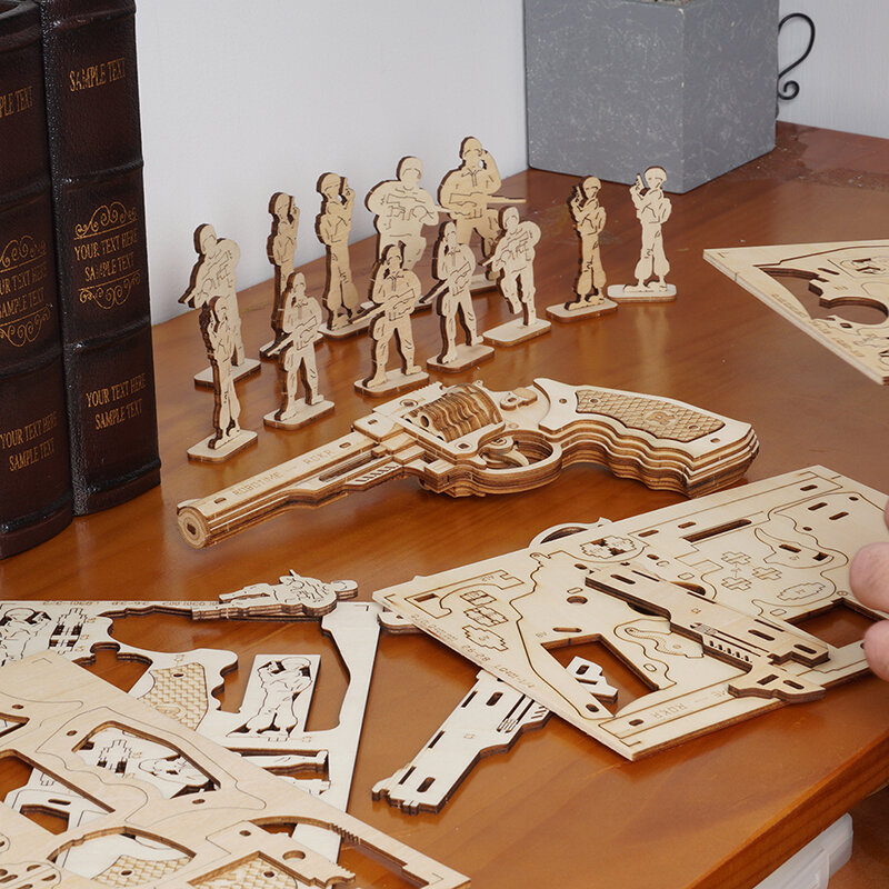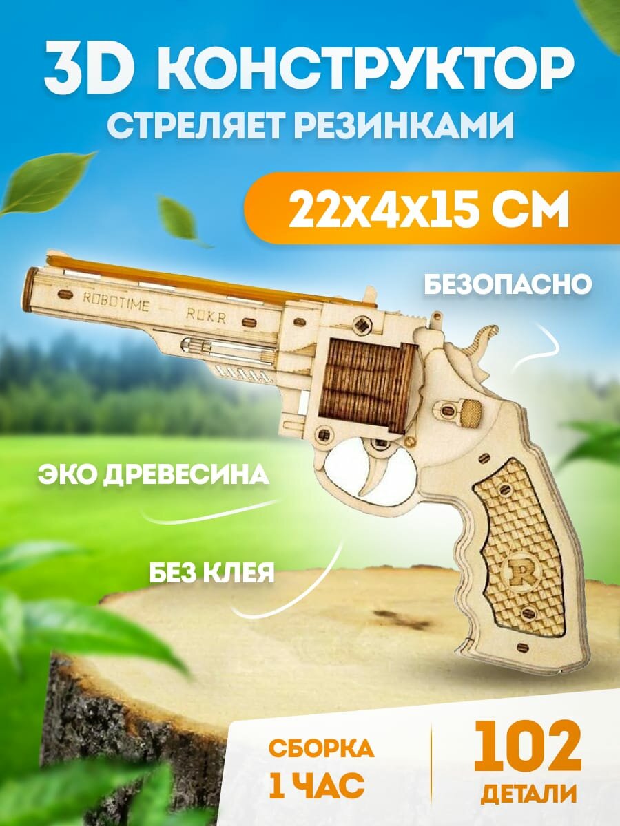 Деревянный 3D конструктор Robotime револьвер Корсак М60 102 дет.