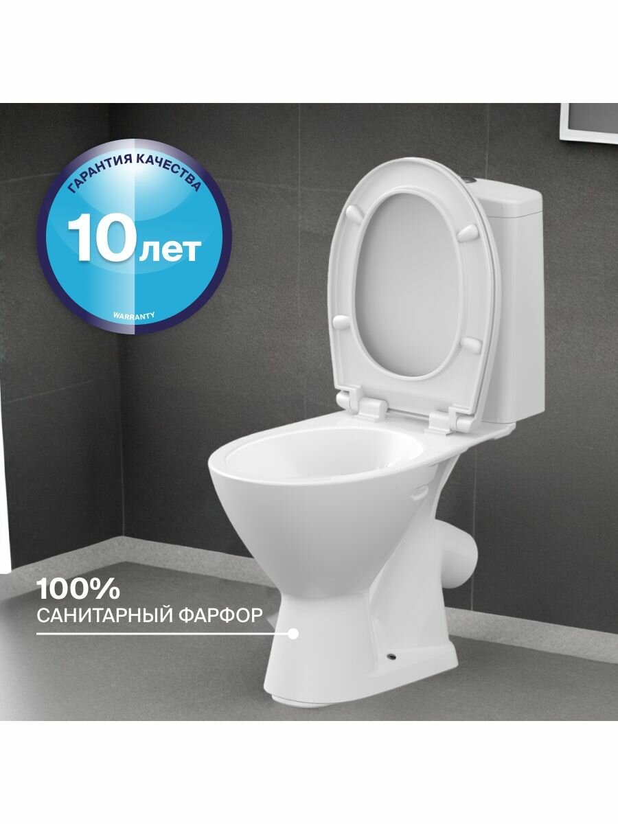 Унитаз компакт напольный Cersanit JUST с сиденьем из термопласта с функцией плавного закрывания (микролифт), антивсплеск, 100% влагостойкий санфарфор, 10 лет гарантии