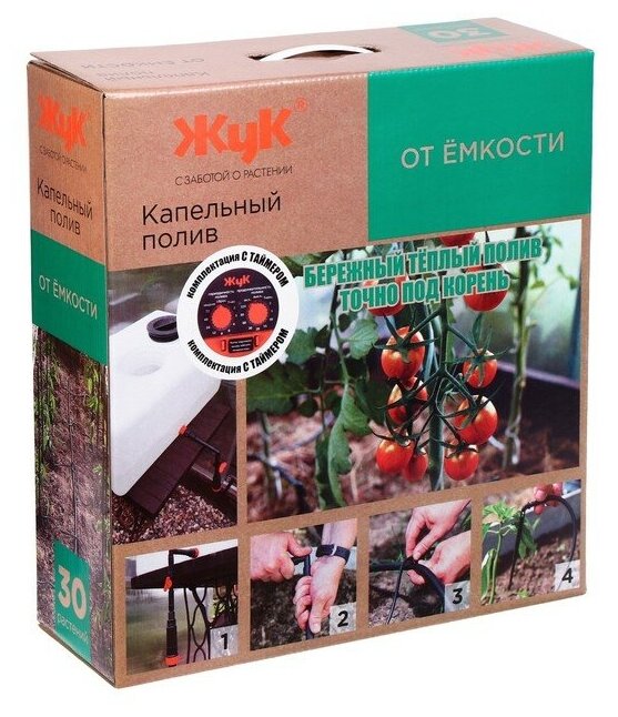 Капельный полив от емкости, на 30 раст, с тайм, Жук, 7573-00