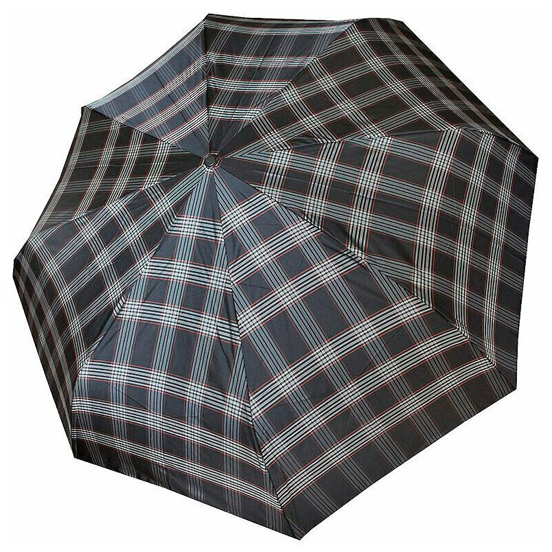 ТРИ слона зонт мужской, клетка, 3 сложения, суперавтомат, "эпонж", ручка-крюк, кожа, купол 103 см. M8851L-02