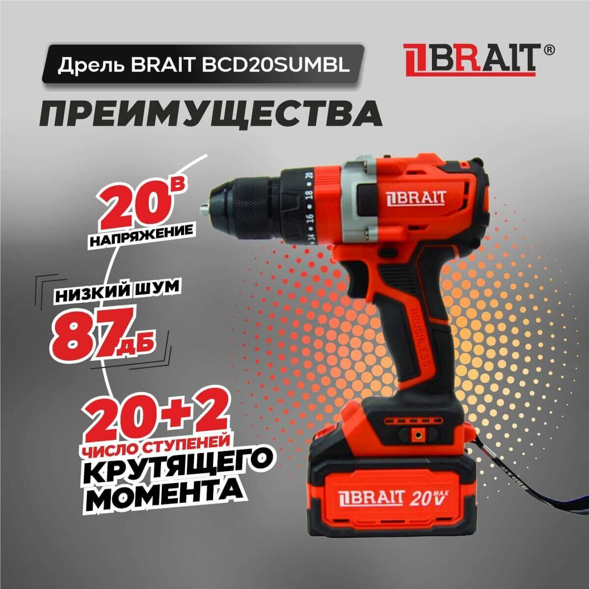 Дрель аккумуляторная BRAIT BCD20SUMBL (единая аккум. система)