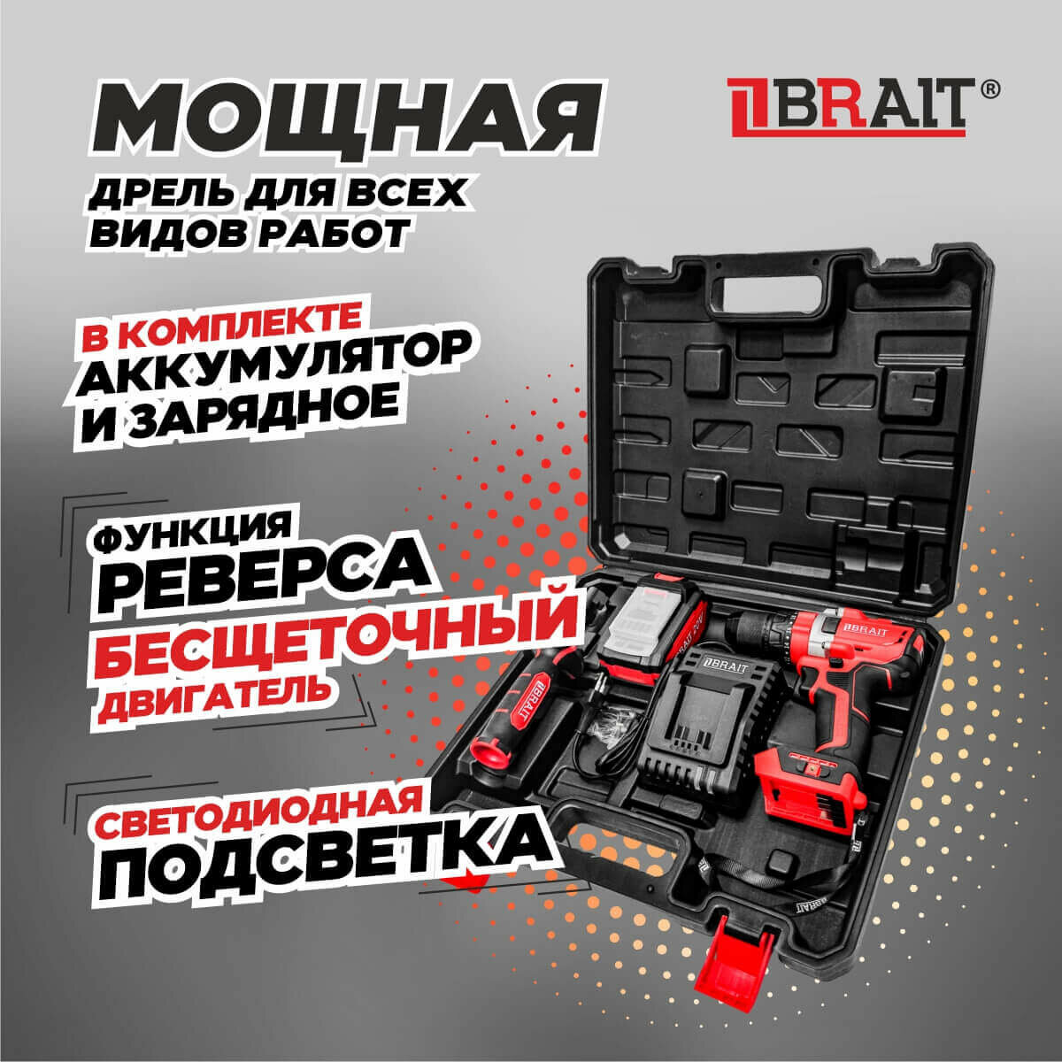 Аккумуляторная дрель-шуруповерт Brait BCD20SUМBL, 20В, 80Нм