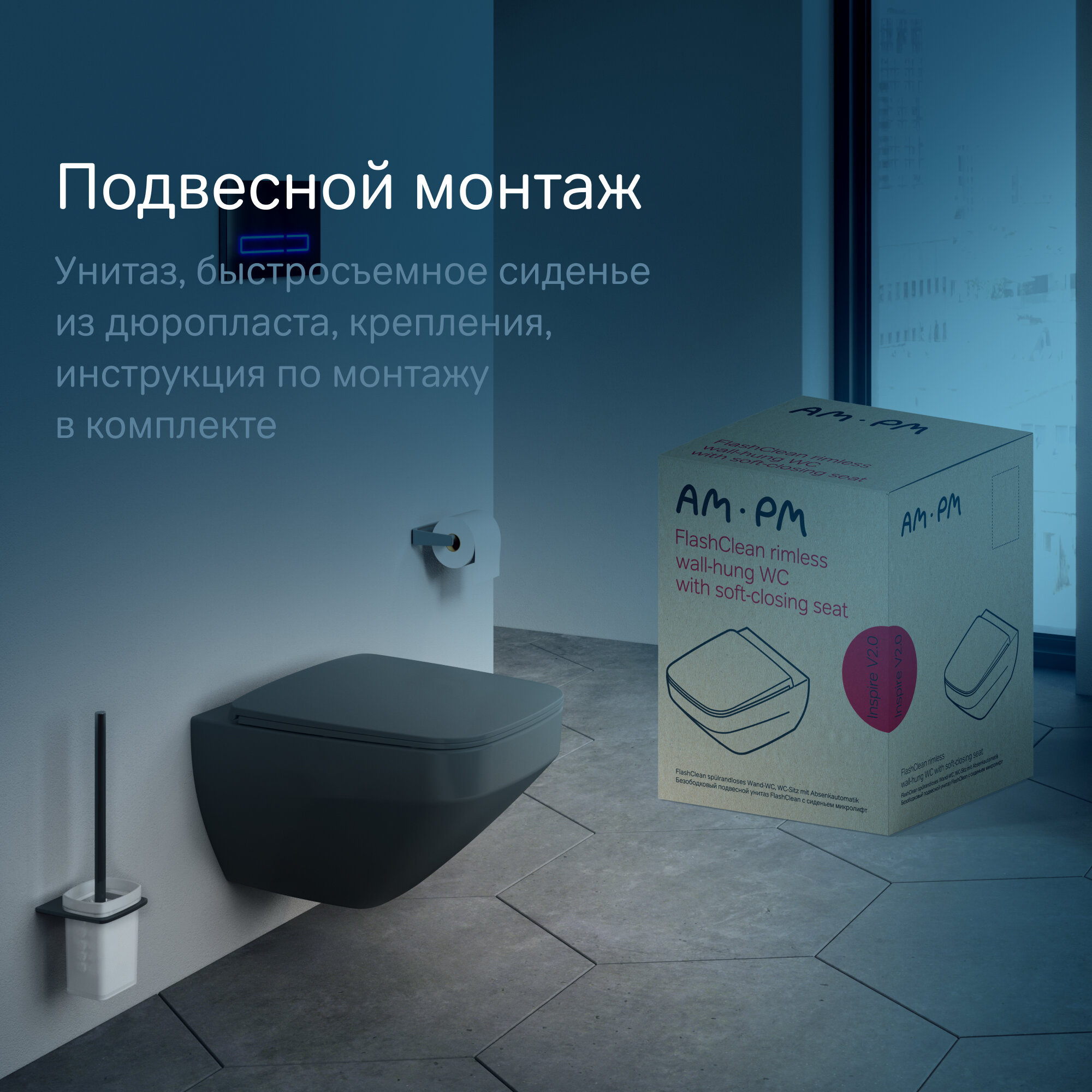 СохранитьУнитаз подвесной безободковый AM.PM Inspire V2.0 C50A1700MBSC черный, быстросъемное сиденье микролифт интересное: