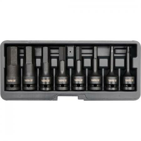 Набор ударных бит шестигранников YATO, CrMo, Hex 6-19 мм, Hrc 54, 1/2", 8 предметов, YT-1066