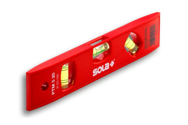 Купить SOLA Уровень пластиковый магнитный PTМ 5, L=20 см, 3 глазка, точн. 1,50 мм/м 01430601